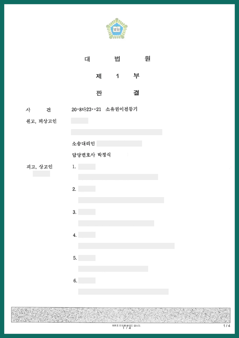 피상속인 사망 이후 원고는 형과 누나들인 피고들을 상대로 해당 부동산에 대하여 증여를 원인으로 한 소유권이전등기청구소송을 제기하였습니다.