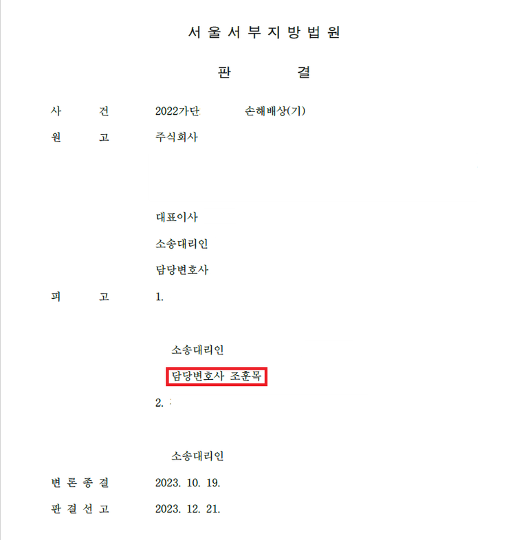 오랜 법정 공방 끝에, 법원은 원고가 최초 주장한 손해 중 일부만을 인용하는 판결을 내림으로써 사건을 종결하였습니다.