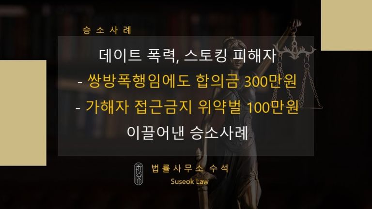 저희 법률사무소 수석은 의뢰인을 위로할 수 있는 금액과 쌍방폭행임을 고려하여 합의금을 협상하였고 우리 의뢰인은 전혀 금전적 손해를 보지 않고 가해자인 구남친으로부터 합의금을 받아낼 수 있었습니다.