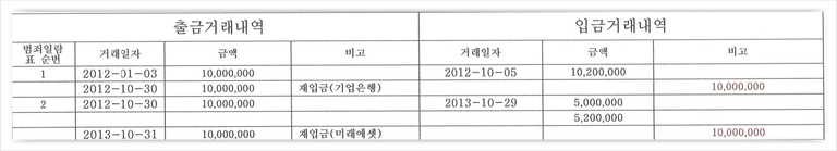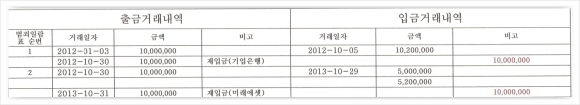 이자를 지급한 후 즉시로 재입금 받는 피고인의 사기행위를 강조하기 위해, 의뢰인과 피고인의 거래내역을 날짜별로 분류한 후 재입금받은 액수를 일일이 특정하였습니다. 양자가 8년간 수많은 거래를 진행해온 관계로, 간략히 거래내역을 정리하였음에도 장표가 30장을 넘어갔습니다.