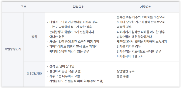 양형인자는 특별양형인자와 일반양형인자로 나누는데 이중 권고영역을 결정하는 것은 특별양형인자입니다.