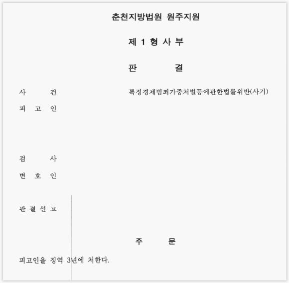 오늘은 제가 사기피해자를 대리하여 피고인이 징역 3년의 실형을 선고받은 사례에 대해 말씀 드리겠습니다.