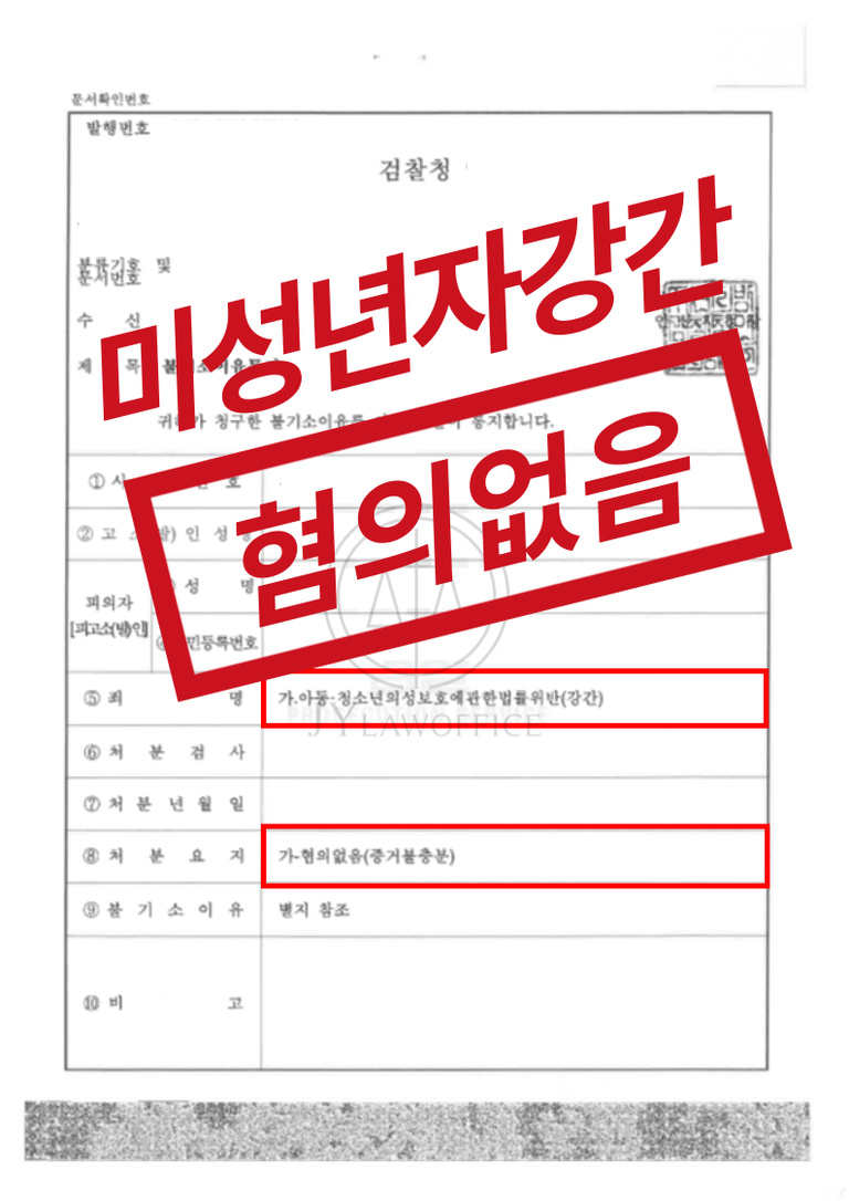 [미성년자성폭행 성공사례] 미성년자강간 - 혐의 없음(증거불충분)