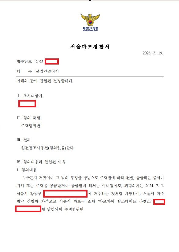갑자기 경찰서에서 전화가 와서는, 제가 서울에 살지도 않으면서 서울에 살았던 것 처럼 전입신고만 해놓고 청약을 신청한 것 아니냐며, 국토부가 고발했으니 조사받아야 한다고 했어요.