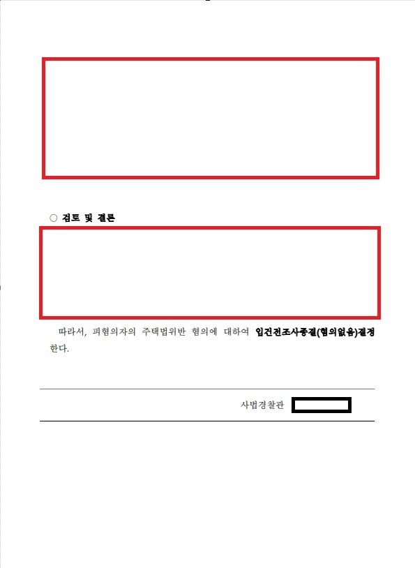 아래와 같이 의뢰인의 사건을 '불입건'으로 조기에 종결시켜드릴 수 있었습니다.