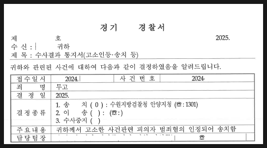 [최종결과] - 경찰은 피의자의 무고 혐의를 인정하여 검찰 송치를 결정