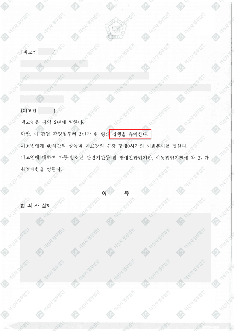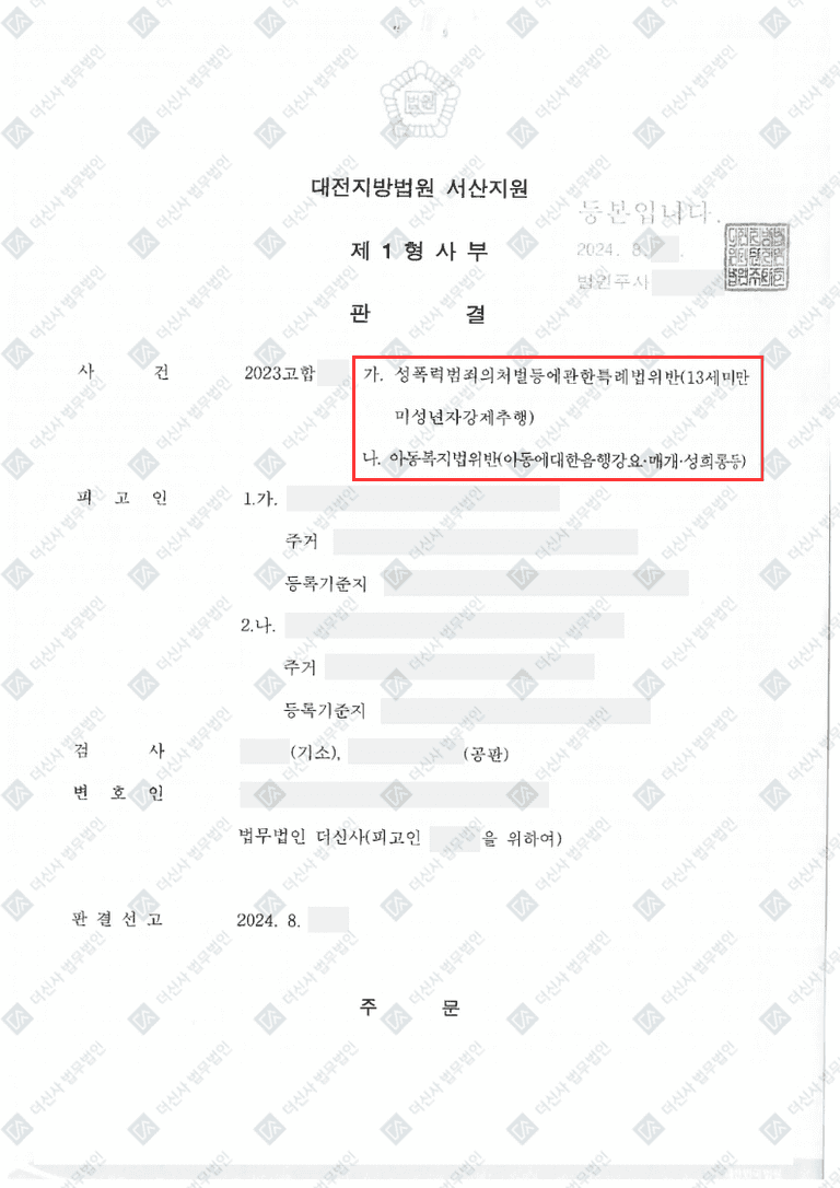 미성년자를 대상으로 한 성범죄 사건은 초기 대응이 무엇보다 중요합니다. 특히 아동복지법위반의 경우 중범죄로 간주되며, 처벌 수위 또한 매우 엄격합니다. 더신사의 성범죄 대응 시스템을 통해 철저한 전략을 수립하고 사건을 체계적으로 처리한 결과, 의뢰인은 최악의 결과를 피할 수 있었습니다. 이와 같은 사건은 초기 단계에서 전문적인 조력을 받는 것이 매우 중요하며, 유사한 상황에 처하셨다면 상담 예약을 통해 구체적인 해결 방안을 제시받으시길 권장드립니다. 언제든 연락을 주시면 성공 사례를 바탕으로 신속하고 효과적인 도움을 드리겠습니다.