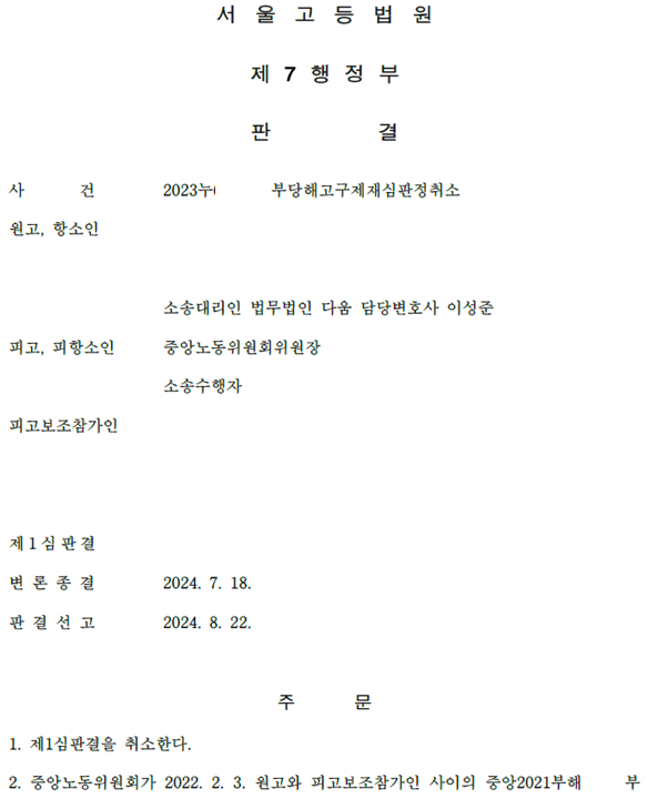 해당 사안은 지방노동위원회, 중앙노동위원회의 판단이 정반대로 나올 정도로 매우 어려운 사안이었습니다.
