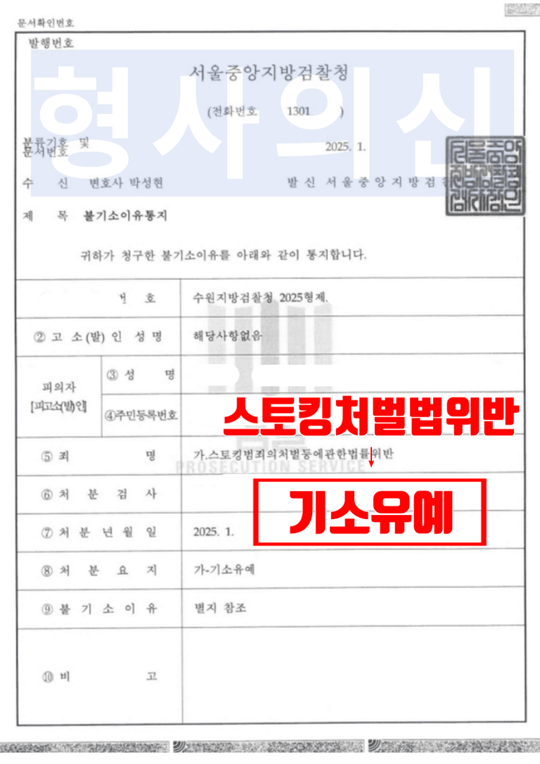 수원지방검찰청의 검사는 법률사무소 유(唯)의 형사전문변호사가 제출한 변호인의견서 및 양형자료 등 수사변호의 전반적인 주장을 받아들여 불기소(기소유예) 처분을 하였습니다.