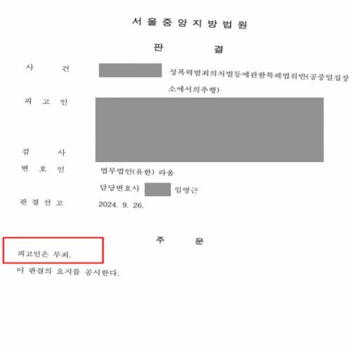 그 결과 법원은 피해자의 진술 및 검사가 제출한 증거만으로 공소사실을 인정할 수 없다는 이유로 피고인에 대해 무죄판결을 선고했습니다.