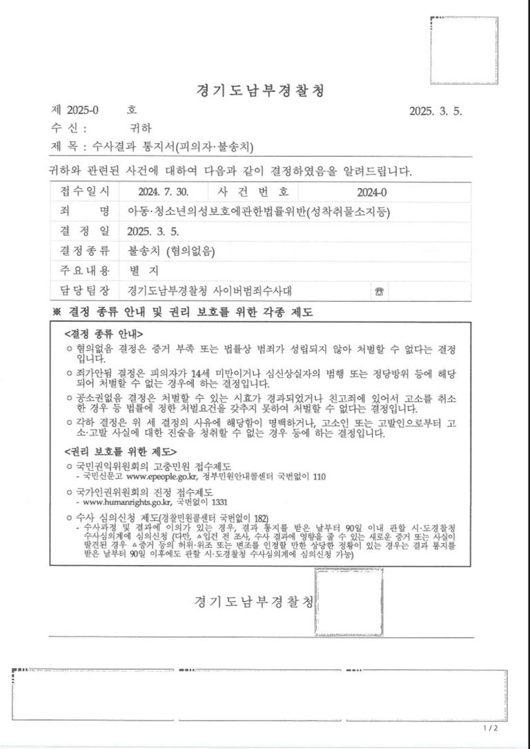다만 구글드라이브 정지, 구드 정지 수사가 개시되었다고 하더라도 제가 변호하는 구드 정지 건에서는 줄줄이 불송치를 받고 있기 때문에 압수수색만 잘 넘긴 이후 제가 변호를 한다면, 너무 걱정할 필요는 없을 것입니다.