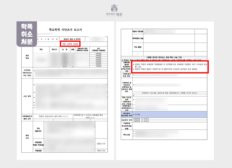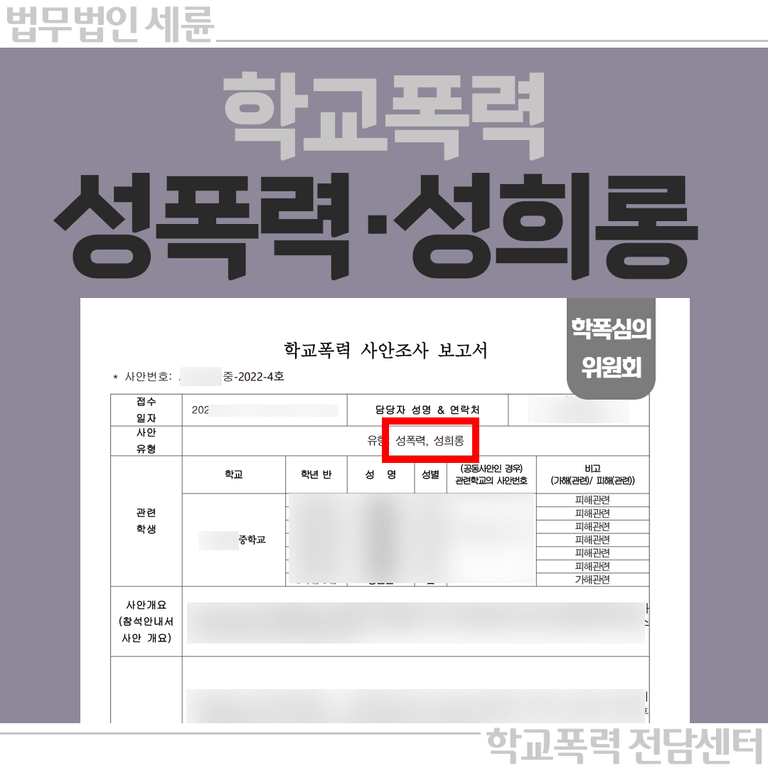 해당 사례에서 A군의 발언 역시 성폭력 및 성희롱의 범주에 포함되지만, 학교폭력 유형에서는 모욕에 해당하였습니다. A 군의 행위가 학폭에 해당하는 것은 당연하고, 정확한 규정을 적용하는 것 또한 학폭 심의 대응에 있어서 중요한 부분이었습니다.