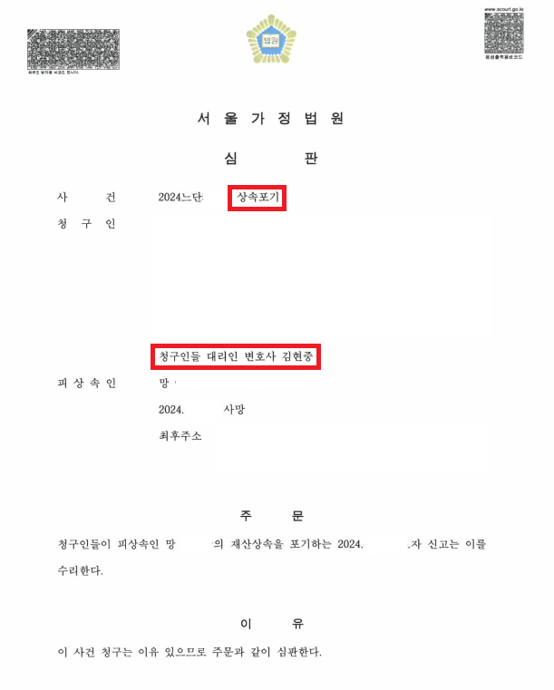 의뢰인의 경우도 상속포기 기한을 얼마 남겨두지 않고 급하게 상속포기를 할 것을 결정하였으며 상속포기 신청을 대리하여줄 것을 의뢰하였습니다.