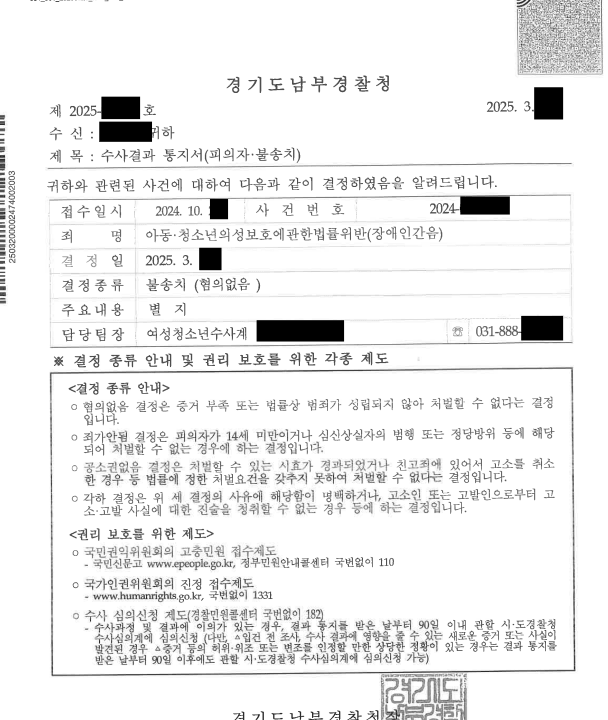 위와 같은 사실관계를 바탕으로, 김도현 변호사는 수사기관에 법리적 의견서를 제출하였습니다. 해당 의견서에는 ▲의뢰인의 고의 부재 ▲상대방의 연령 및 장애에 대한 인식 불가능성 ▲성관계의 자발성과 상호 동의 여부 등이 구체적으로 정리되어 있었고, 수사기관 또한 이를 심도 있게 검토한 끝에 ‘혐의없음’ 처분을 내리게 되었습니다.