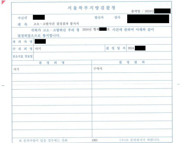 수사기관에서도 피고소인에게 사기의 고의가 있다는 점을 인정하였고, 북부지방검찰청에서 약식결정을 통하여 벌금 100만 원 벌금이 부과되었습니다.