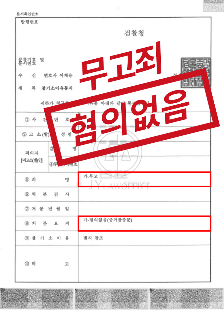 이와 같은 형사전문변호사의 조력으로 의뢰인은 무고죄 혐의에 대해 혐의 없음의 처분을 받고 무고죄 처벌을 피하며 무사히 사건을 종결시킬 수 있었습니다.
