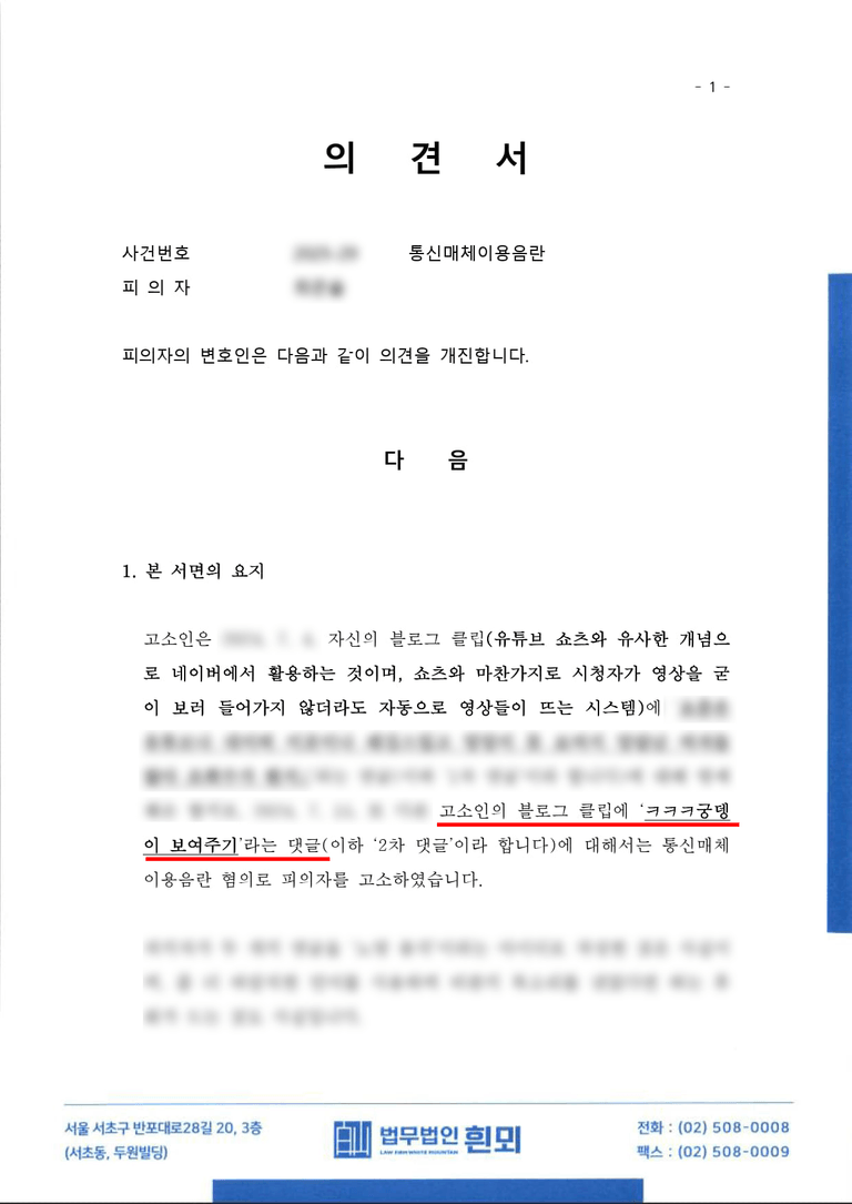 ◆ 고소당한 댓글 내용 & 의견서 주장