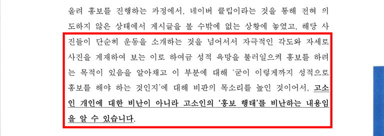 이 사안은 상대측에서 '홈트를 소개하기 위해 어쩔 수없이 노출이 있는 옷을 입었다' 라고 반론할 수도 있는 사안이었습니다. 그런데 막상 사진들을 찾아보니, 상당히 자극적인 각도나 자세의 사진들이 굉장히 많았습니다. 그러한 지점들을 강조하여 '성적인 내용을 유발할 수 있는 동기를 제공하였다, 그로 인해 조회수도 올리고 홍보를 하여 수익으로 연결된 부분이 있을텐데 역으로 고소를 하는 것은 과도하다'라고 주장했습니다.