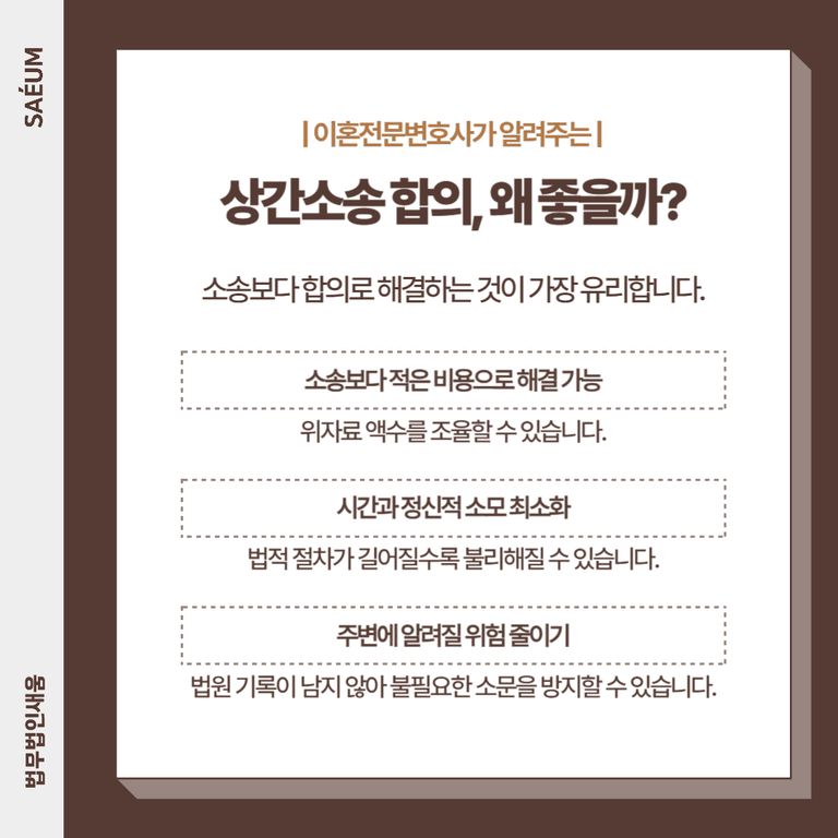 ✔ 소송보다 적은 비용으로 해결 가능 – 위자료 액수를 조율할 수 있습니다.