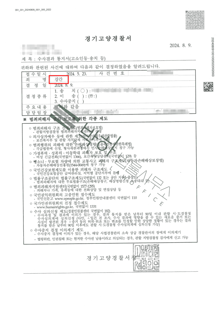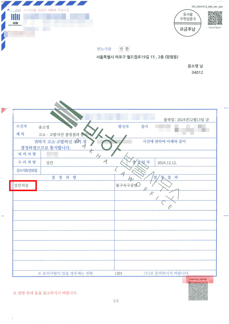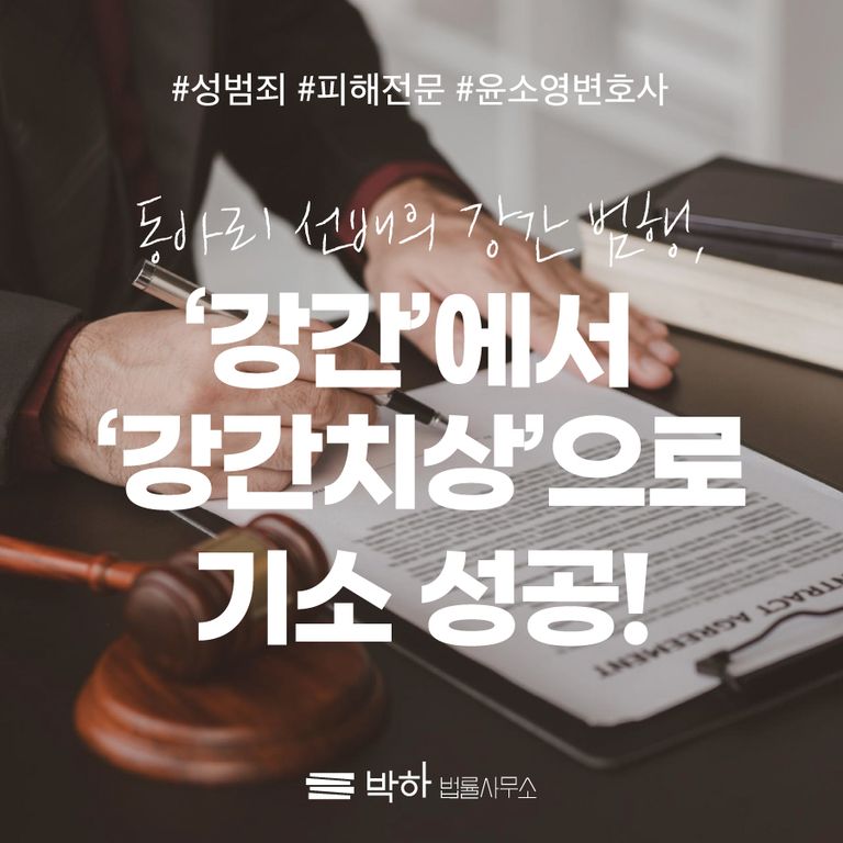 윤소영 변호사는 가해자가 합당하고 엄중한 처벌을 받도록 최선의 법률 조력을 제공하였으며, 그 결과 해당 사건은 기존 '강간'에서 '강간치상'으로 변경되어 기소되었고, 현재 1심 재판을 앞두고 있습니다.