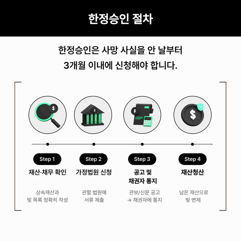 특히 한정승인 절차는 복잡한 법적 절차와 기한, 요건이 얽혀 있어