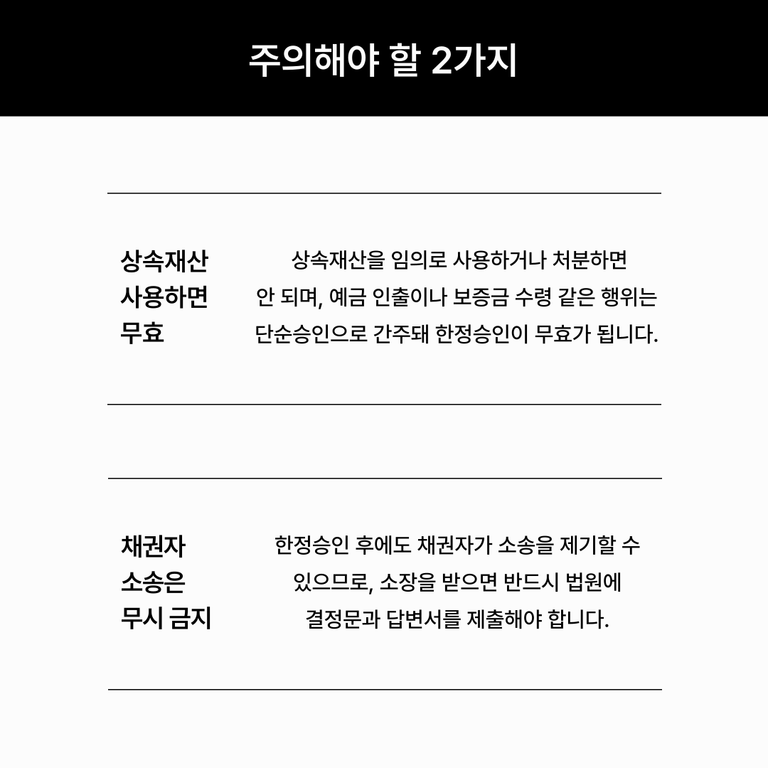 한정승인 절차, 주의해야 할 2가지