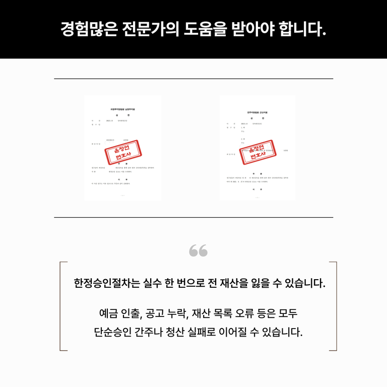 한정승인 절차는 법적으로 까다로운 절차입니다. 단순히 기한 내에 신청한다고 해서 자동으로 보호받는 것이 아닙니다. 사소한 실수 하나로 전 재산을 잃을 수도 있습니다.