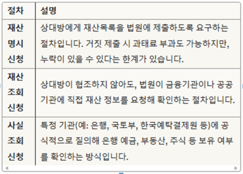 2. 상대방 모든 재산을 정확히 파악.