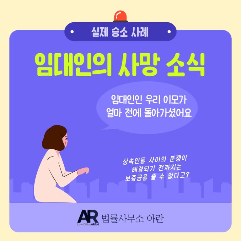 그제야 조카는 '임대인이 사망했는데, 상속 문제가 생겨서 보증금을 반환할 수 없다'라는 사실을 털어놓았습니다.