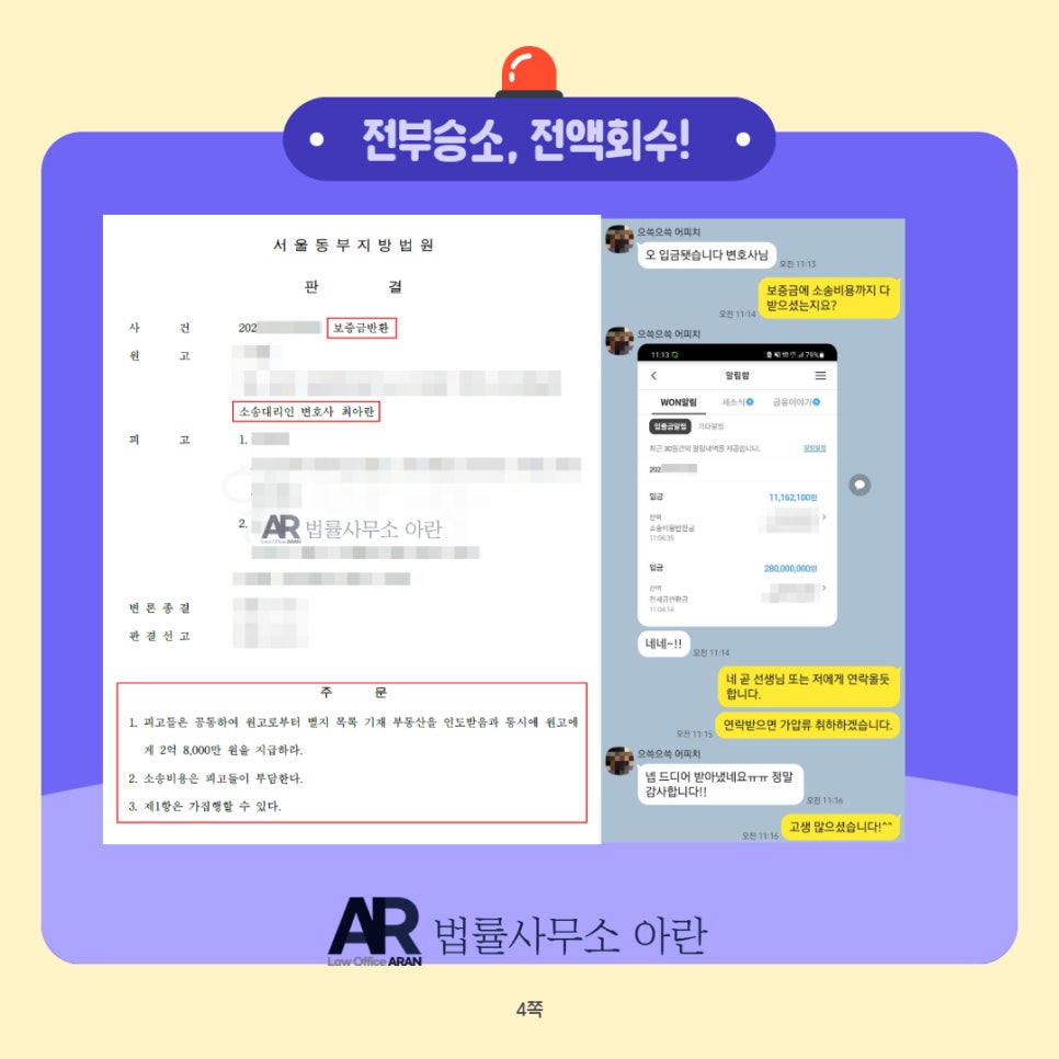 전부 승소! 보증금 회수 완료