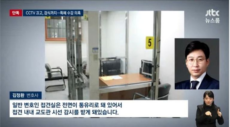 [김정환/변호사 : 일반 변호인 접견실은 전면이 통유리로 돼 있어서 접견 내내 교도관 시선 감시를 받게 돼 있습니다.]