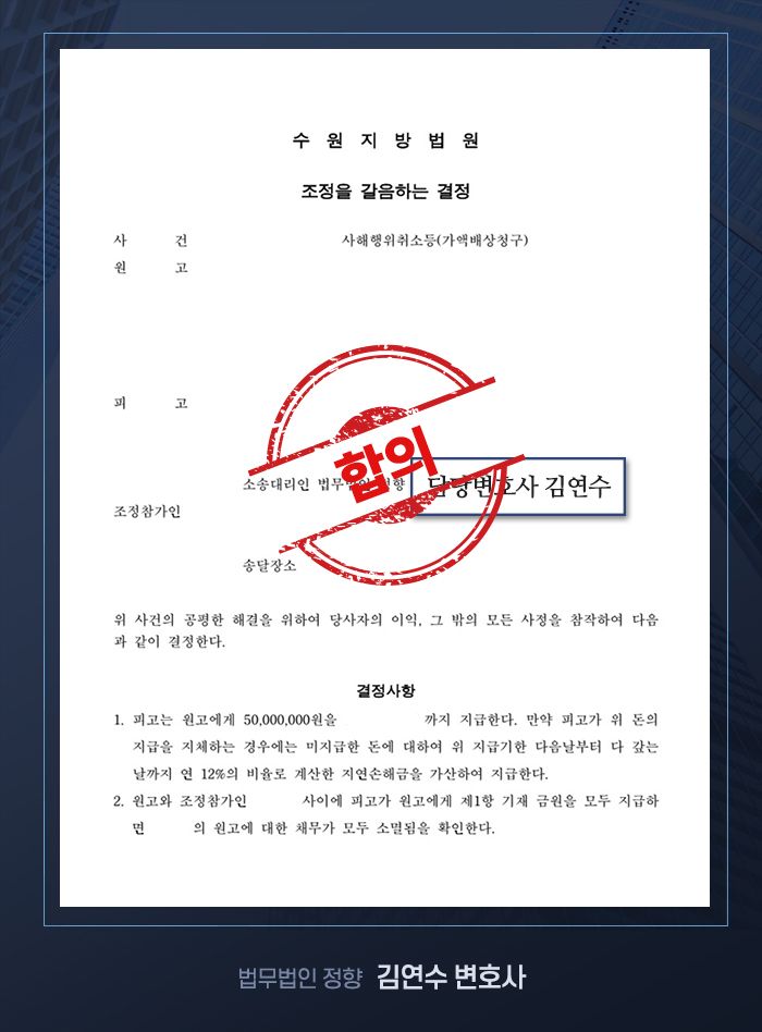 상록수제일차유동화전문유한회사는 의뢰인 측에 총 1억 6천만 원의 채권을 주장했으나, 김연수 변호사의 전략적 대응과 적극적인 법리 주장을 통해 의뢰인 측은 총 채무 1억 6천만원 중 1억 1천만 원을 탕감받고, 5천만 원만 지급하는 것으로 합의를 하게 되었습니다.