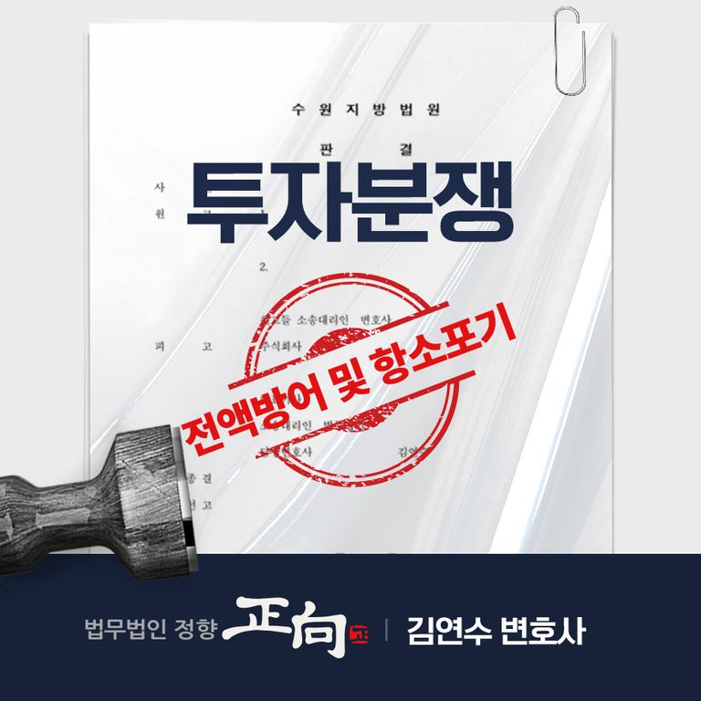 김연수 변호사는 투자 관련 분쟁 사건에서 피고를 대리하여 원고의 1억 2천만 원 청구 전액을 방어하고, 원고가 항소를 포기하도록 이끌어 사건을 성공적으로 마무리하였습니다.