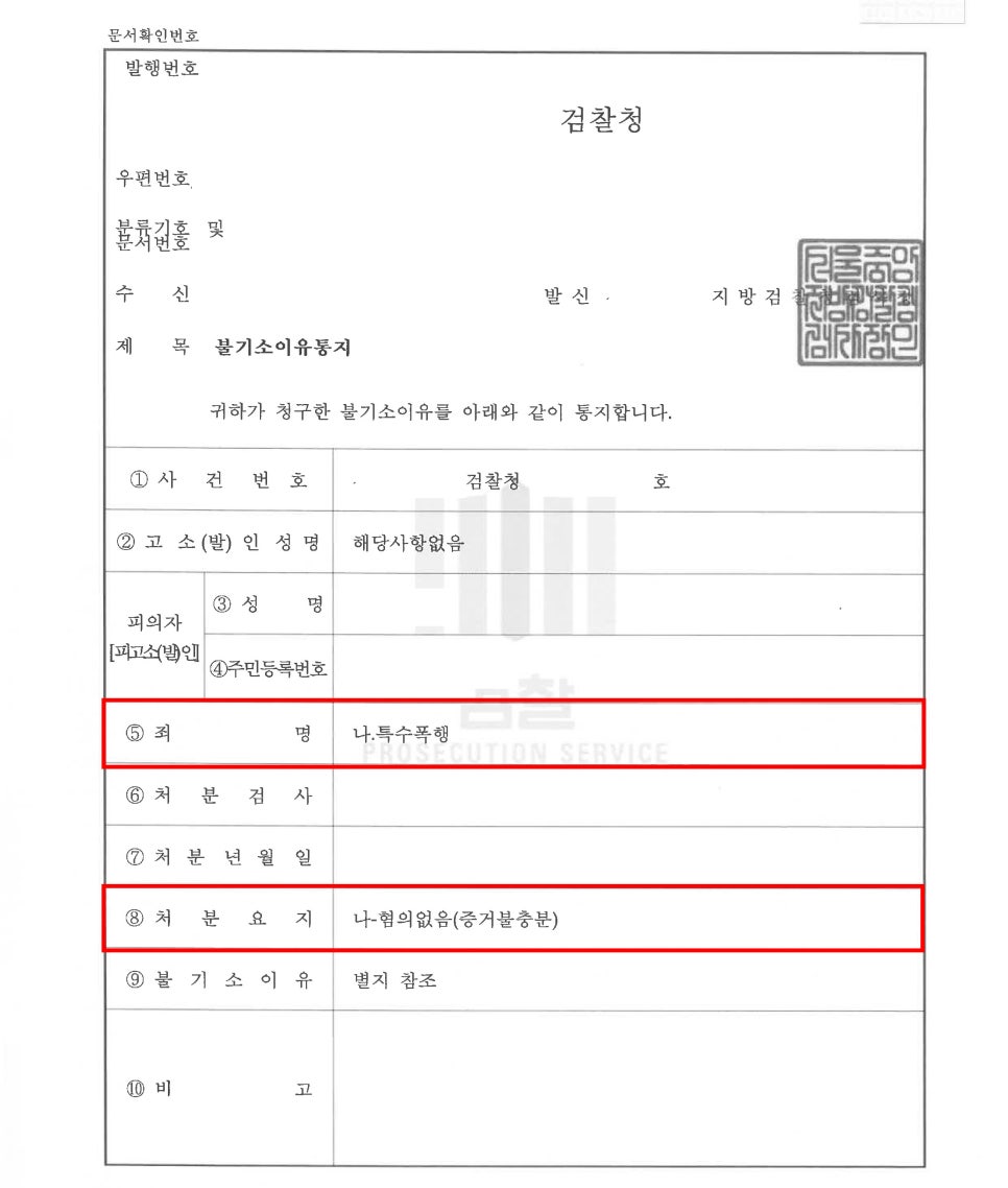 결국 이러한 주장을 받아들여, 검사는 A씨에게 "혐의없음" 불기소 처분을 내렸습니다.