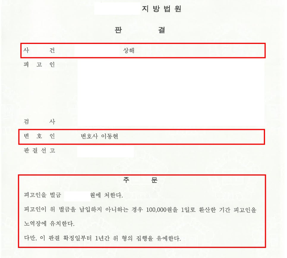 이번 포스팅에서는 상해 혐의를 받았던 의뢰인이 철저한 법적 대응을 통해 "벌금형의 집행유예"를 받은 실제 사례를 소개하겠습니다.