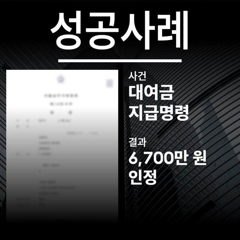 대여금 지급명령 → 결과 : ‘6,700만원’ 반환