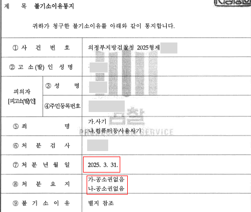 최근(2025. 3. 31.) 의정부지방검찰청으로부터 의뢰인(피의자)의 사기 등 사건에 대해 공소권 없음 처분을 받은 성공사례가 있어 이를 공유하고자 합니다.