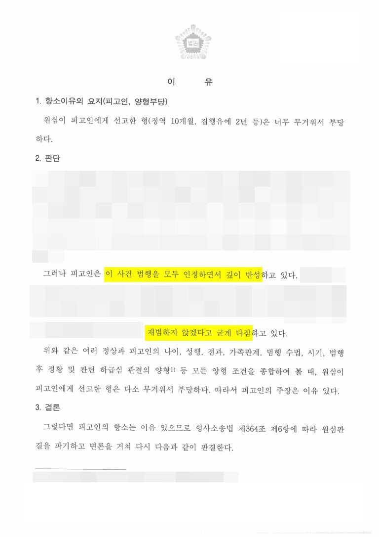 자신의 잘못을 바로 인정하고 성실히 반성하는 태도를 보이는 것은 양형에 아주 중요한 참작 사유가 됩니다.