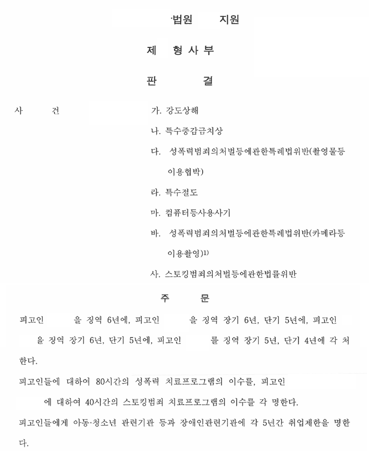 3. 공판 단계에서는 일부 피의자가 곧 성년이 되기에 서둘러 끝내려는 모습을 보이며, 합의해주지 않으면 공탁하겠다며 도리어 협박 섞인 연락을 주는 모습이 괘씸하여 합의를 거부한 끝에 피고인들은 모두 실형을 선고받았습니다.