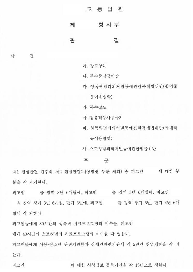 4. 피고인들이 모두 구속된 이후에야 긴장이 조금 풀린 의뢰인은 항소심에서 고민 끝에 일부 피고인들과 합의하여 금전으로나마 피해를 회복하실 수 있었고, 워낙 수법이 잔인하고 죄질이 나쁜 범죄였기에 피고인들은 항소심에서도 실형이 유지되었습니다.