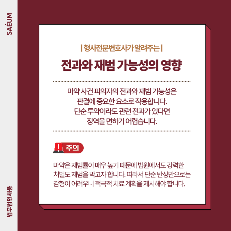✔ 기존 전과가 마약 범죄가 아니라는 점 부각