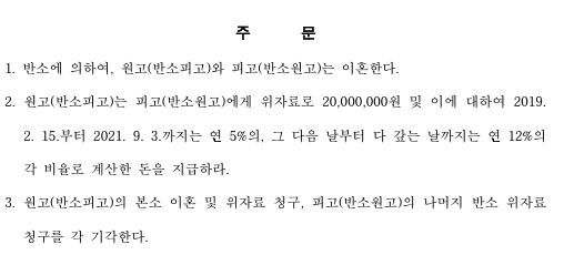 이혼 소송을 당한 피고를 대리하여 반소청구로 이혼을 구하고 상대방의 부정행위를 입증하여 위자료 2,000만 원 청구 인용
