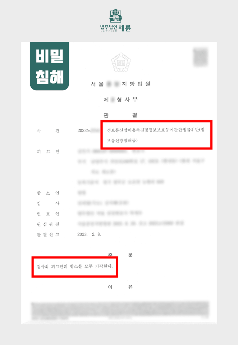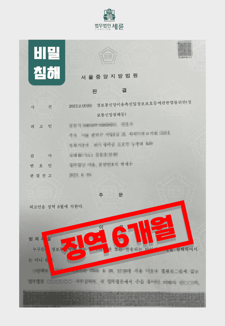 오늘은 정보통신망법 비밀침해죄의 피해자 대리를 통해 항소를 방어하여 가해자의 징역 판결을 받아낸 성공사례를 소개 했습니다. 피해자 대리의 경우 재판 과정에서 마음에 상처를 입을 수 있고, 이것이 2차 가해가 될 수 있기 때문에 더욱 확실하고 신속한 진행이 필요합니다.