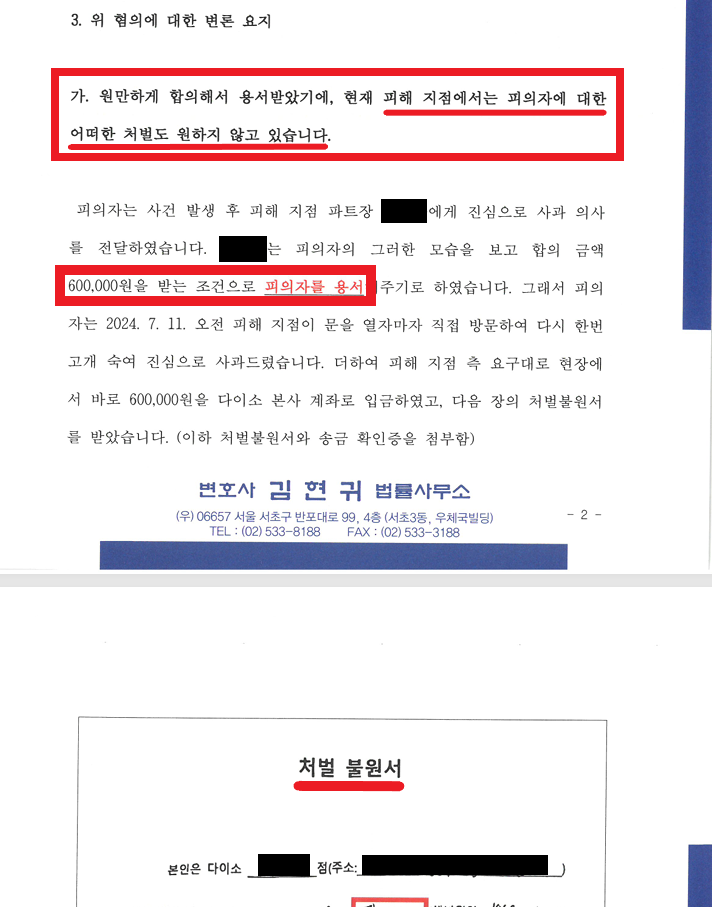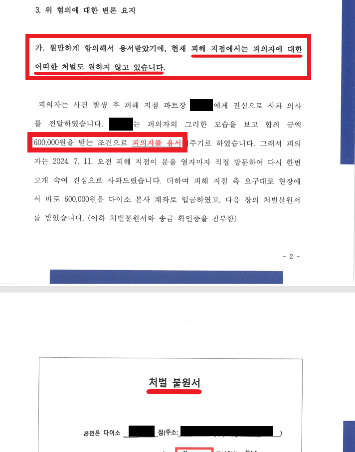 - 다이소가 현재 피의자에 대한 처벌을 원하지 않고 있음.