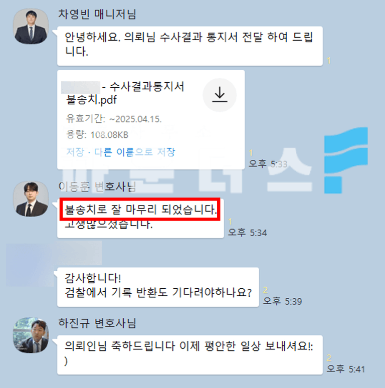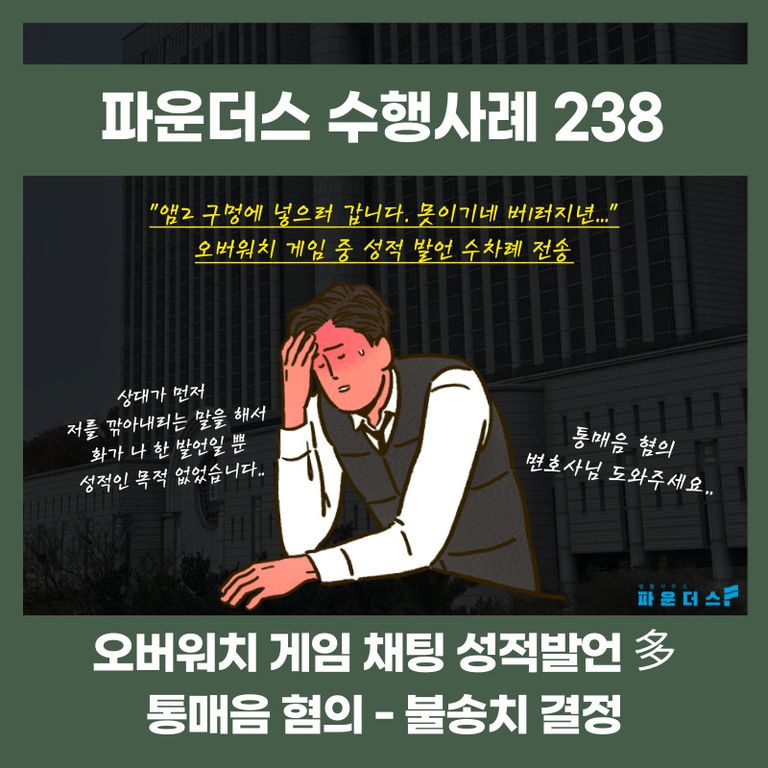 그 결과 오버워치 게임 채팅창으로 패드립 발언을 수차례 전송한 의뢰인은 통매음 사건에 있어 불송치 결정으로 경찰단계에서 조속히 마무리 지을 수 있었습니다.