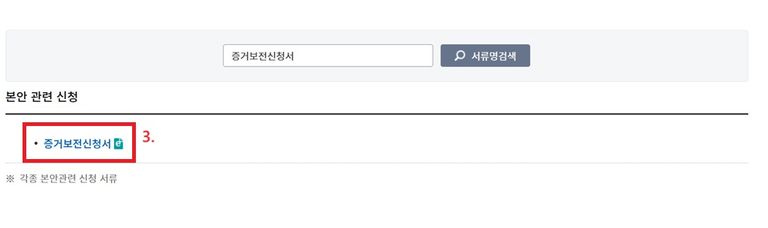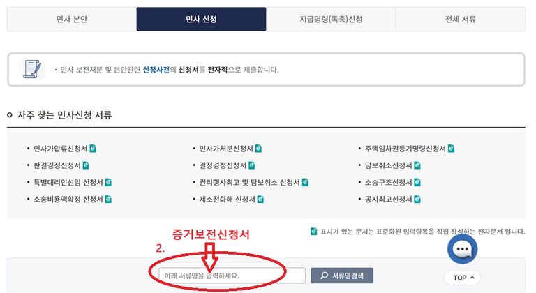 이렇게 뜹니다. 3. 증거보전신청서를 클릭해주세요.