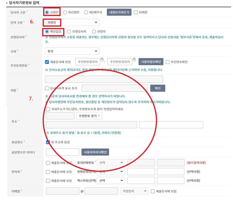 6. 신청인은 신청하는 사람, 피신청인은 신청을 받는 사람을 의미합니다.
