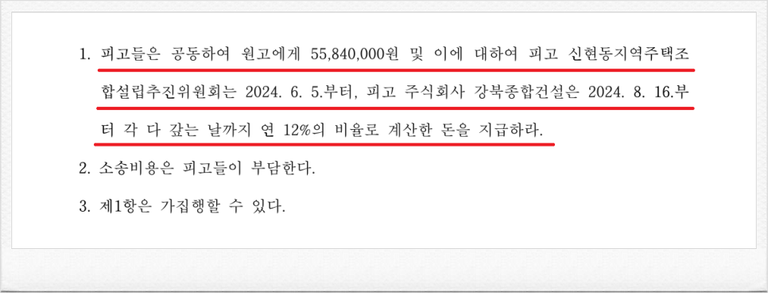 결국, 재판부는 이러한 저의 주장을 받아들였고, 피고들은 공동하여 의뢰인에게 55,840,000원 및 이에 대한 지연손해금을 지급하라는 내용의 판결을 이끌어 내었습니다.