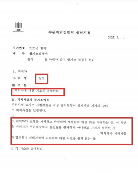 무인점포 절도 기소유예 받은 실제사례