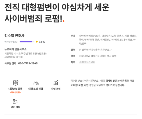 안녕하십니까? 사이버 범죄 로펌 뉴로이어의 김수열 대표 변호사입니다.